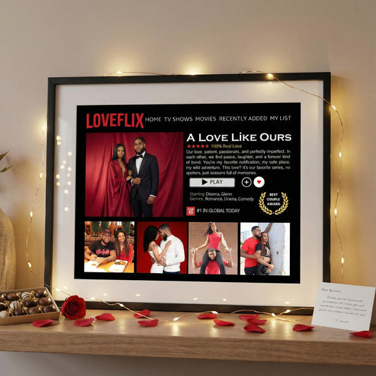 LoveFlix Netflix Inspired Custom Couple Photo Poster Print | Romantic Movie Style Wall Art